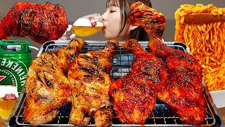 🍗요리먹방- 통다리자메이카치킨 불닭볶음면 생맥주🍺직접구운 불향가득 통다리치킨에 볶음밥까지 먹방😋 CHICKEN MUKBANG ASMR EATINGSHOW REALSOUND